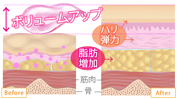 | 贅沢に3種類のヒアルロン酸を配合! ヒアルロン酸は美容外科でも豊胸術に「ヒアルロン酸注射」などで使用されています! ![]() グラマドンナピンキ―ジェルでは