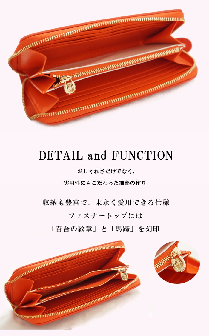 | 仕様 | ラウンドファスナー開閉,小銭入れ×1,札入れ×3,カード入れ×24,ポケット×3 |
