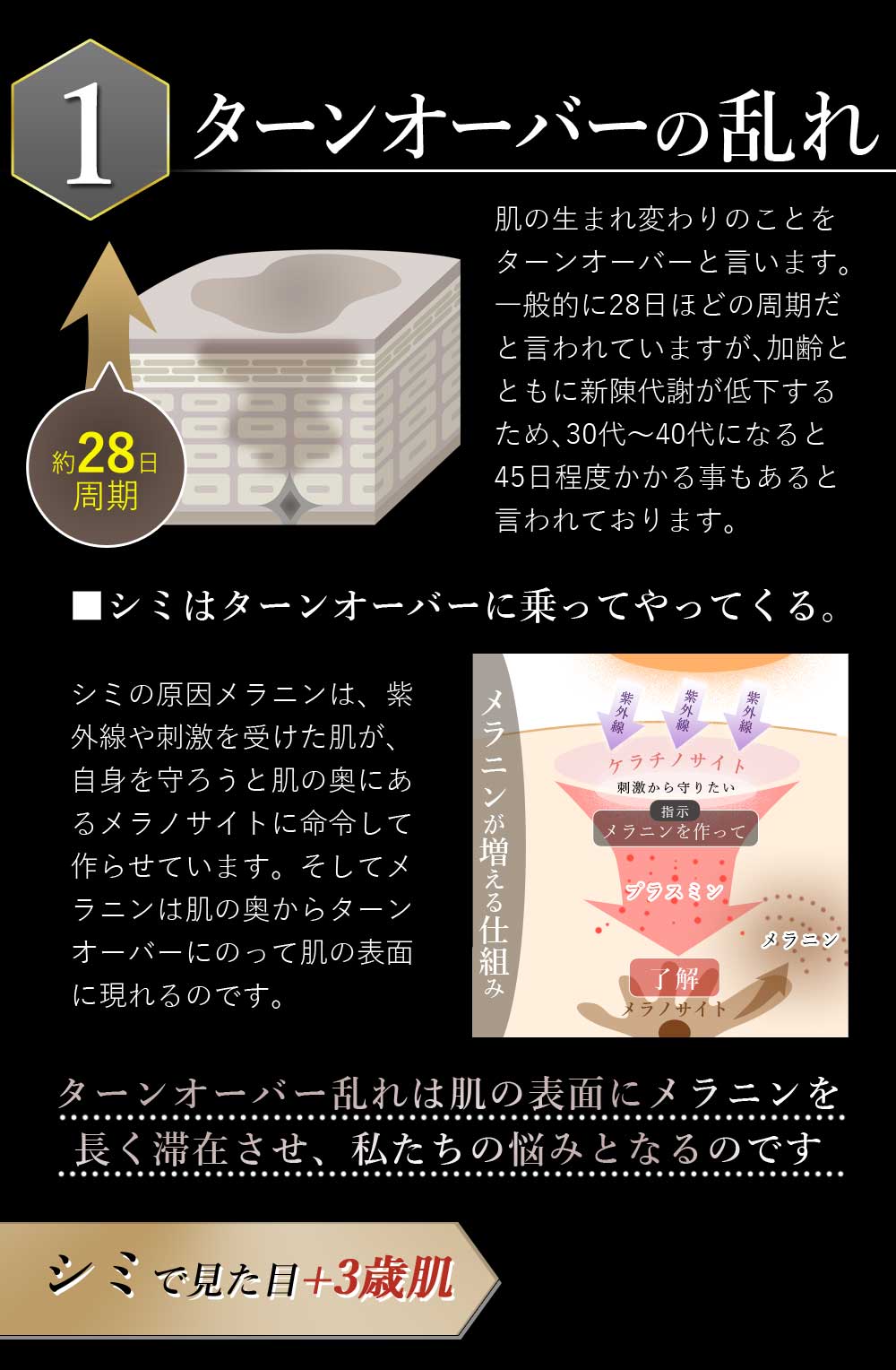【効能又は効果】 肌あれ・あれ性。メラニンの生成を抑え、しみ、そばかすを防ぐ。肌をひきしめる。肌を清浄にする。肌を整える。皮膚をすこやかに保つ。皮膚にうるおいを与える。あせも・しもやけ・ひび・あかぎれ・にきびを防ぐ。油性肌。かみそりまけを防ぐ。日やけ・雪やけ後のほてりを防ぐ。