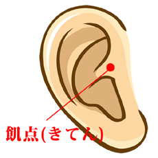 耳の前側、真ん中の当たりの顔の側にある突起のくぼみ当たりにあるつぼです。食欲抑制効果があります。食事の15分くらい前に刺激しておくと効率よく食欲を抑えることが出来ます。